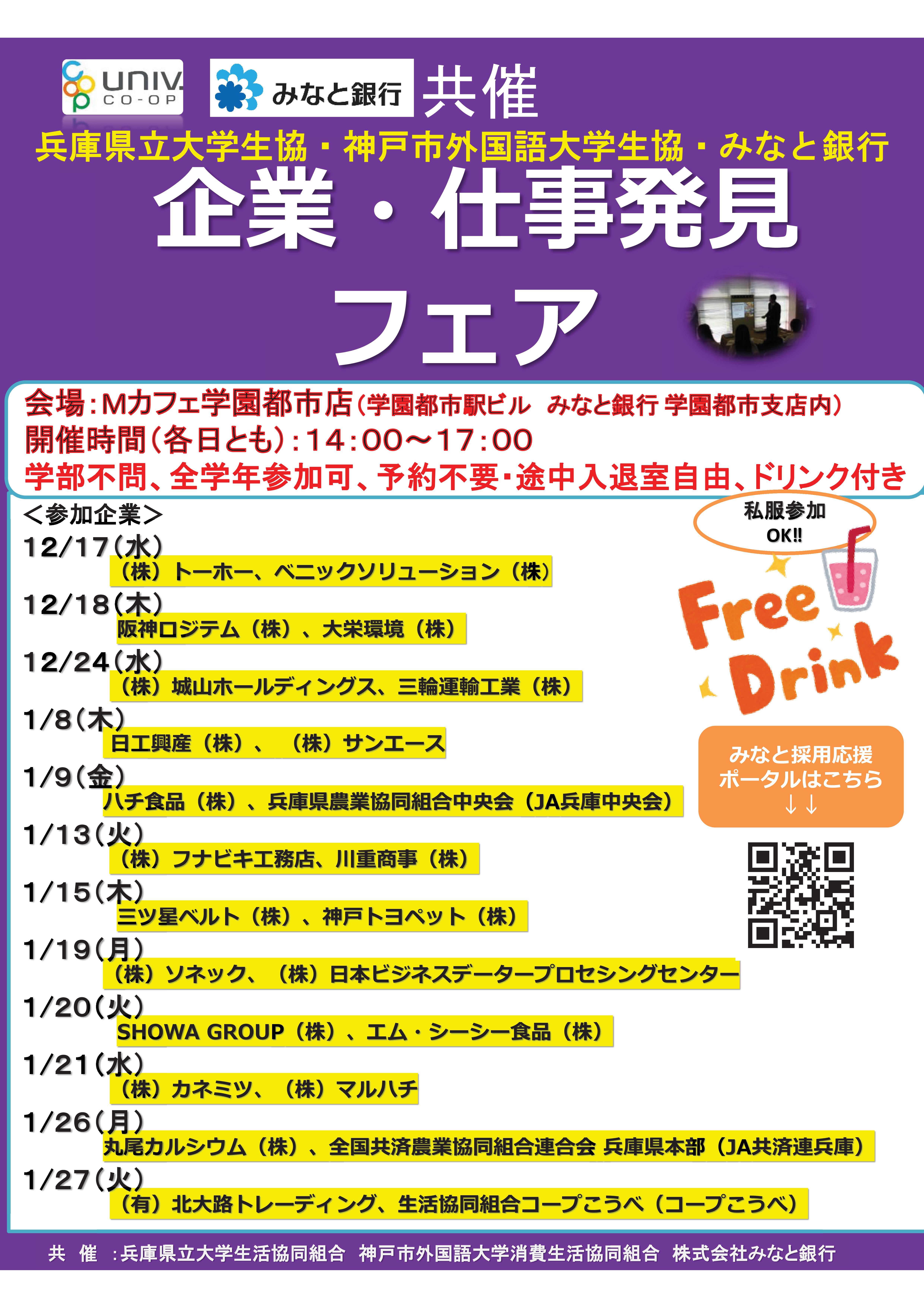 お問合せ:兵庫県立大学生協 企業説明会事務局 担当:大江 ohe@uhcoop.jp