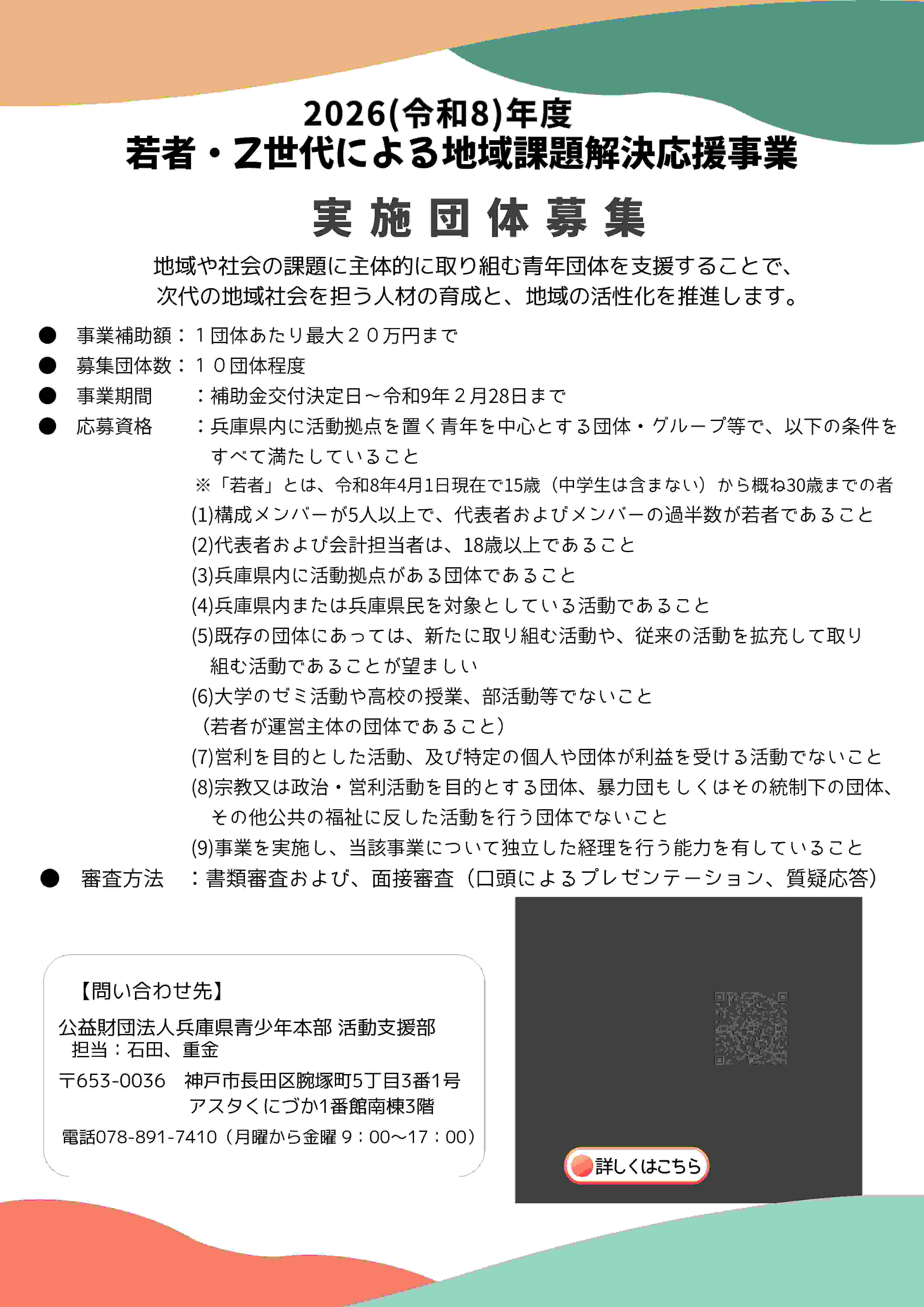 ※その他、詳細は(公財)兵庫県青少年本部HPをご覧ください。 詳しくはコチラから